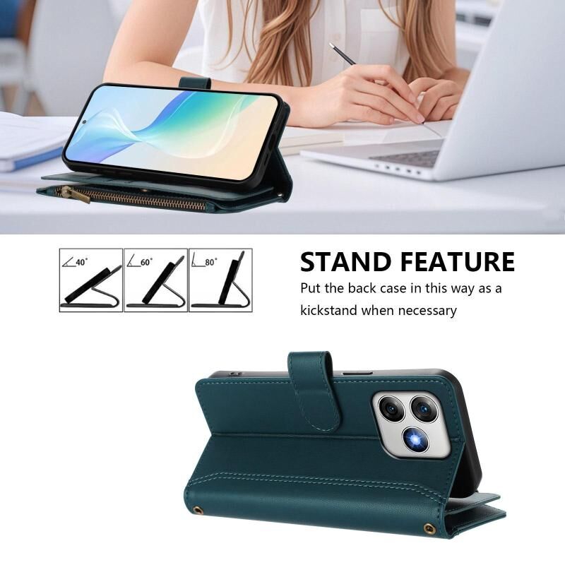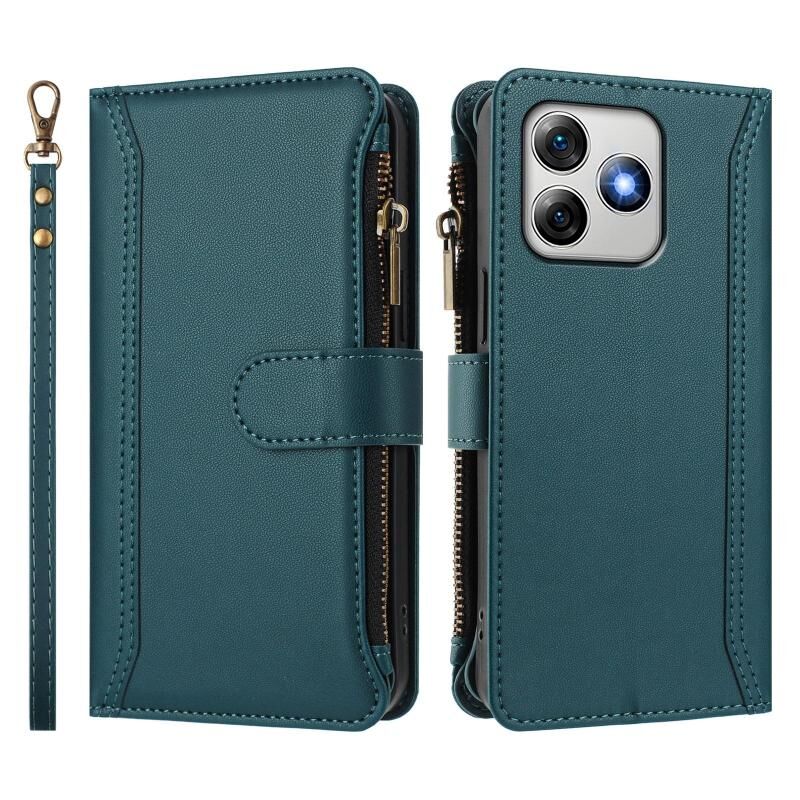 For Ulefone Note 18 Ultra / Note 18 Pro Magnetic Closure 9 Card Slots Zipper Leather Case with Hand Strap(Dark Green)