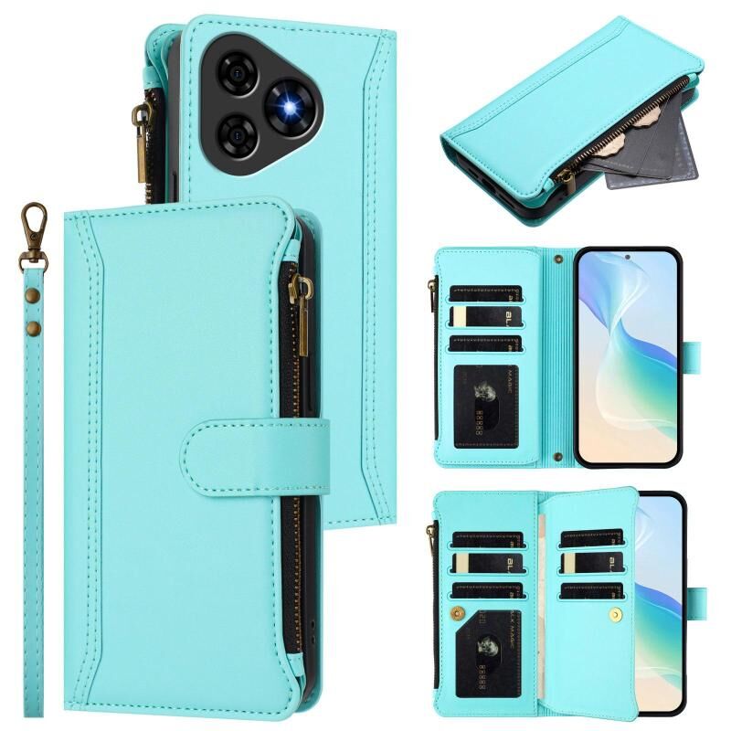 Για Ulefone Note 19 Μαγνητικό Κλείσιμο 9 Θήκες Κάρτας Δερμάτινη Θήκη με Φερμουάρ και Λουρί Χεριού (Σκούρο Μπλε)