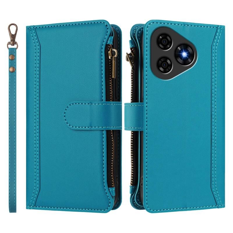 Για Ulefone Note 19 Μαγνητικό Κλείσιμο 9 Θήκες Κάρτας Δερμάτινη Θήκη με Φερμουάρ και Λουρί Χεριού (Τουρκουάζ)