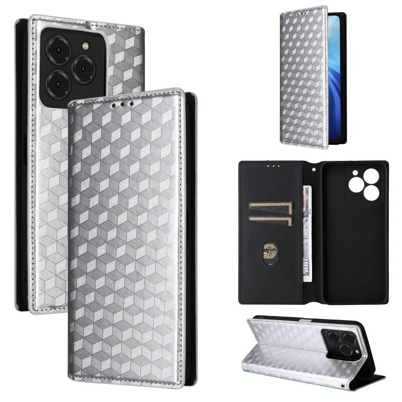 For Ulefone Note 20 Pro Cubic Grid Texture Flip Leather Phone Case(Silver)
