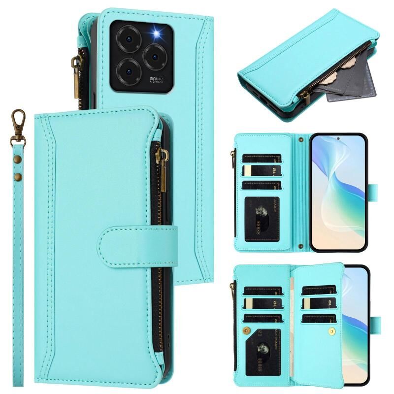 Για Ulefone Note 20 Pro Μαγνητικό Κλείσιμο 9 Θήκες Κάρτας Δερμάτινη Θήκη με Φερμουάρ και Λουρί Χεριού (Σκούρο Μπλε)