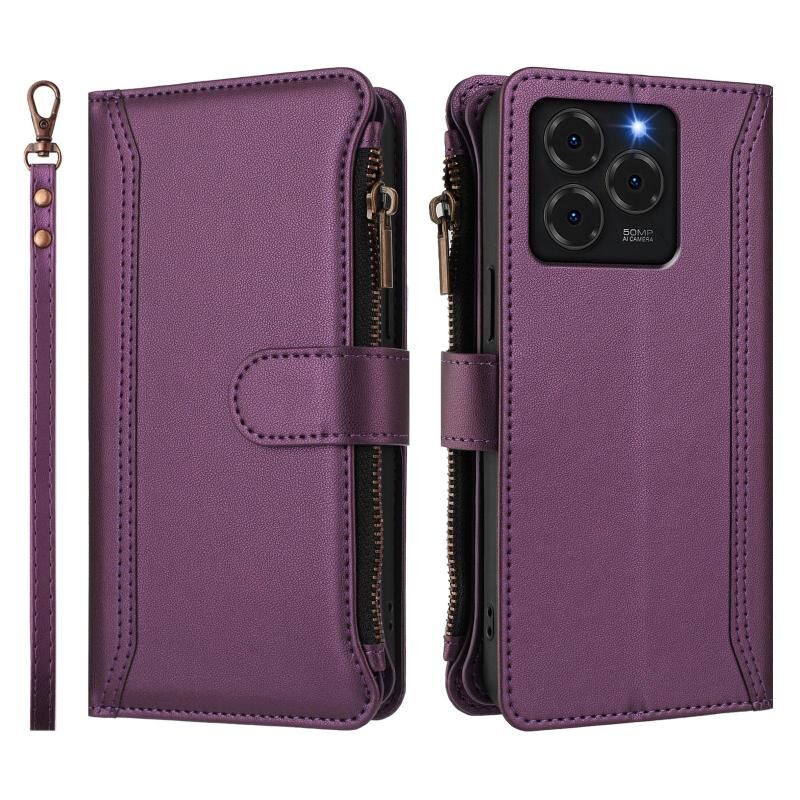 Για Ulefone Note 20 Pro Μαγνητικό Κλείσιμο 9 Θήκες Κάρτας Δερμάτινη Θήκη με Φερμουάρ και Λουρί Χεριού (Σκούρο Μπλε)