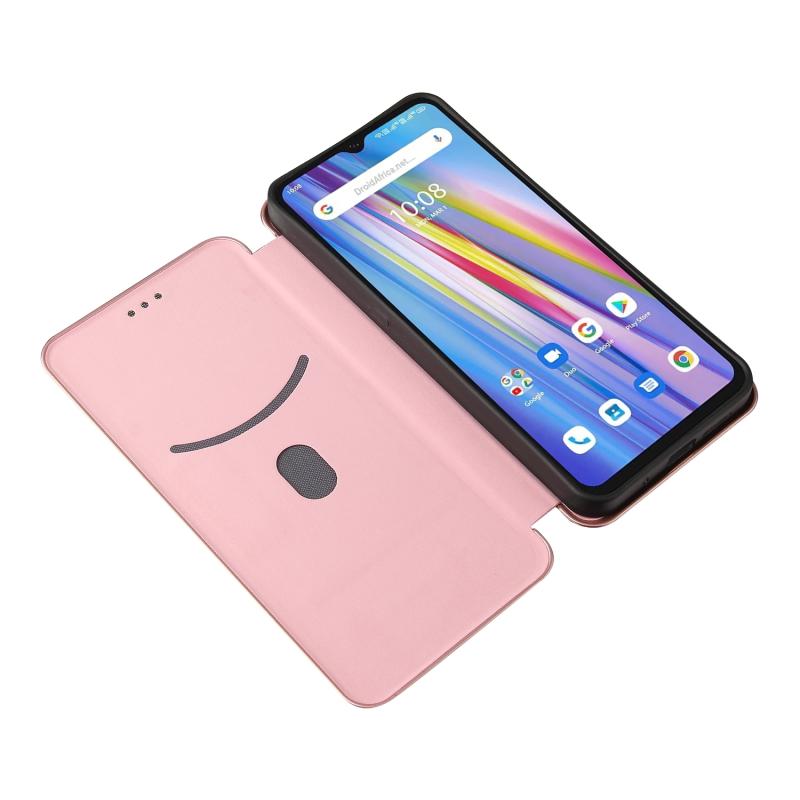 For UMIDIGI A11 Carbon Fiber Texture Horizontal Flip TPU + PC + PU Leather Case with Card Slot(Pink)