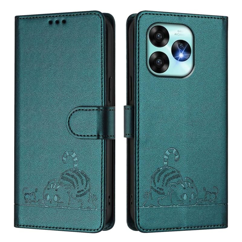 Θήκη τηλεφώνου από δέρμα με ανάγλυφο σχέδιο γάτας και ποντικού για UMIDIGI A15 / A15C / A15T με κορδόνι (Μέντας Πράσινο)