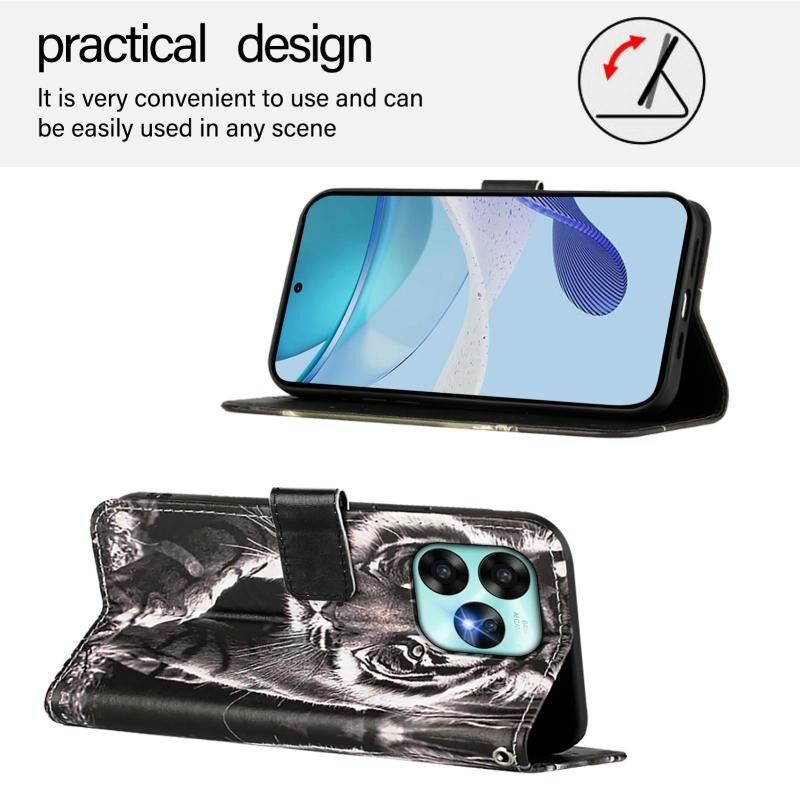 Θήκη τηλεφώνου από δέρμα με απλή ύφανση και πολύχρωμο σχέδιο (Τριαντάφυλλα σε μαύρο) για Umidigi A15 / A15C / A15T.