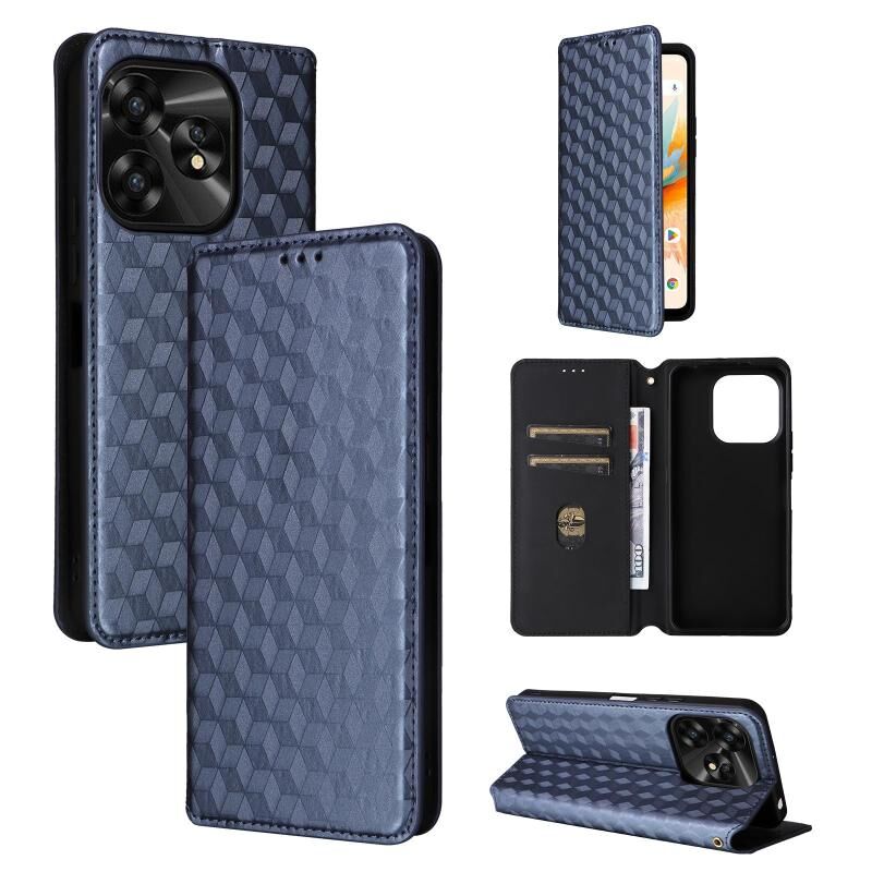 Θήκη τηλεφώνου από δέρμα με ανάγλυφο κυβικό πλέγμα για Umidigi A15 / A15C / A15T (Μαύρο)