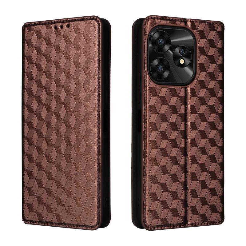 Θήκη τηλεφώνου από δέρμα με ανάγλυφο κυβικό πλέγμα για Umidigi A15 / A15C / A15T (Μαύρο)