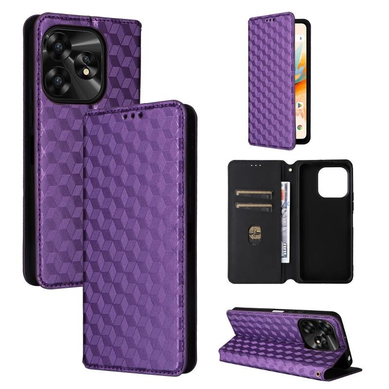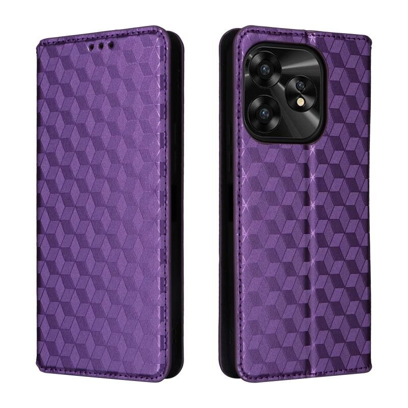 Θήκη τηλεφώνου από δέρμα με ανάγλυφο κυβικό πλέγμα για Umidigi A15 / A15C / A15T (Μαύρο)