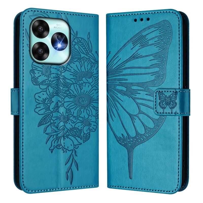 Για UMIDIGI A15 / A15C / A15T ανάγλυφη πεταλούδα δερμάτινη θήκη τηλεφώνου (μπλε)
