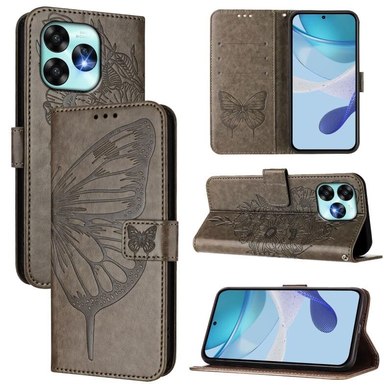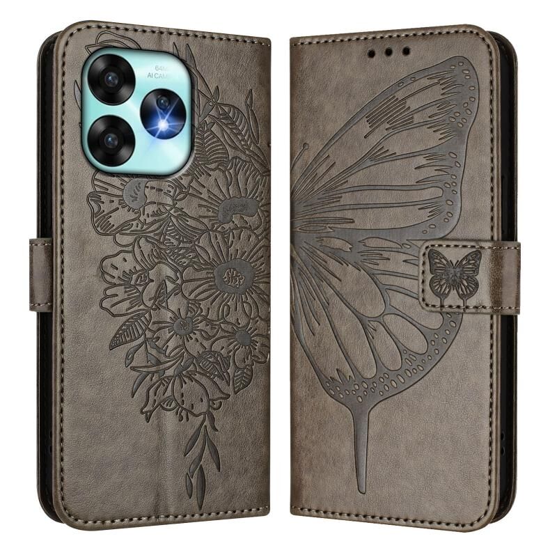 Για UMIDIGI A15 / A15C / A15T ανάγλυφη πεταλούδα δερμάτινη θήκη τηλεφώνου (γκρι)