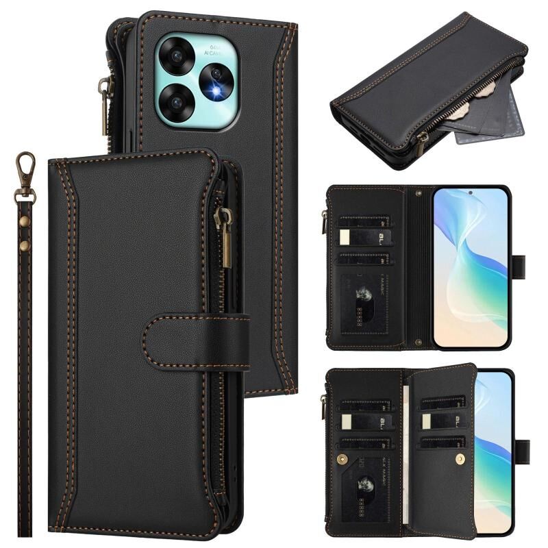 For Umidigi A15 / A15C / A15T Magnetic Closure 9 Card Slots Zipper Leather Case with Hand Strap(Black)