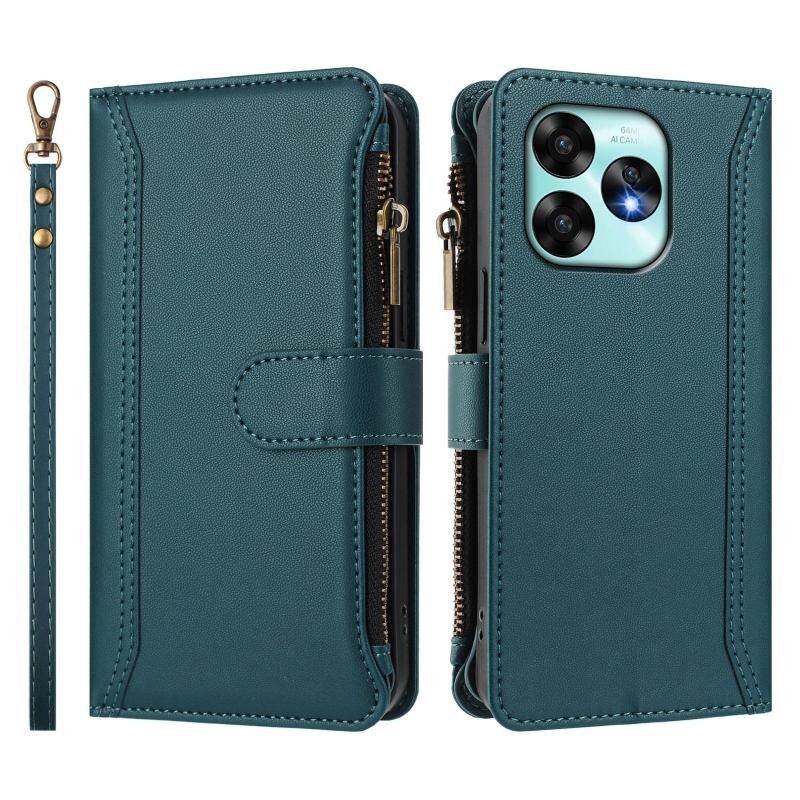 For Umidigi A15 / A15C / A15T Magnetic Closure 9 Card Slots Zipper Leather Case with Hand Strap(Dark Green)
