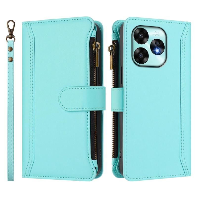 For Umidigi A15 / A15C / A15T Magnetic Closure 9 Card Slots Zipper Leather Case with Hand Strap(Mint Green)