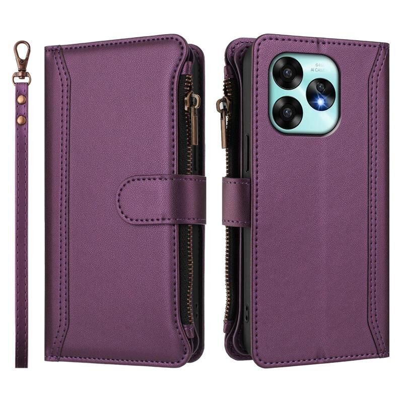 For Umidigi A15 / A15C / A15T Magnetic Closure 9 Card Slots Zipper Leather Case with Hand Strap(Purple)