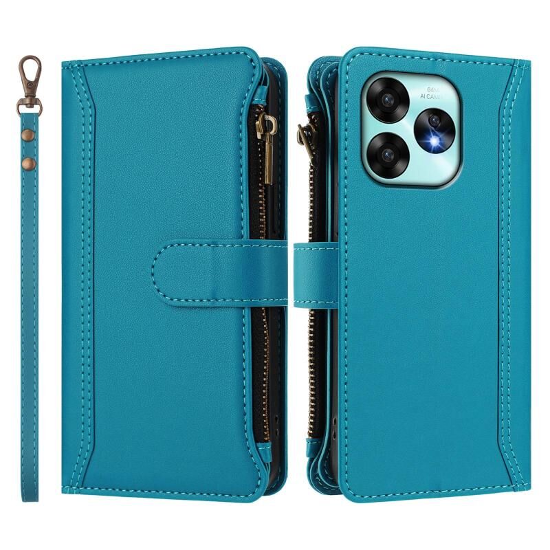 For Umidigi A15 / A15C / A15T Magnetic Closure 9 Card Slots Zipper Leather Case with Hand Strap(Turquoise)
