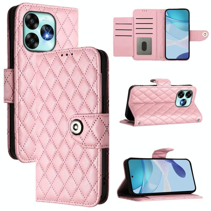 Για UMIDIGI A15 / A15C / A15T Rhombic υφή Flip δέρμα τηλέφωνο υπόθεση με κορδόνι (ροζ)