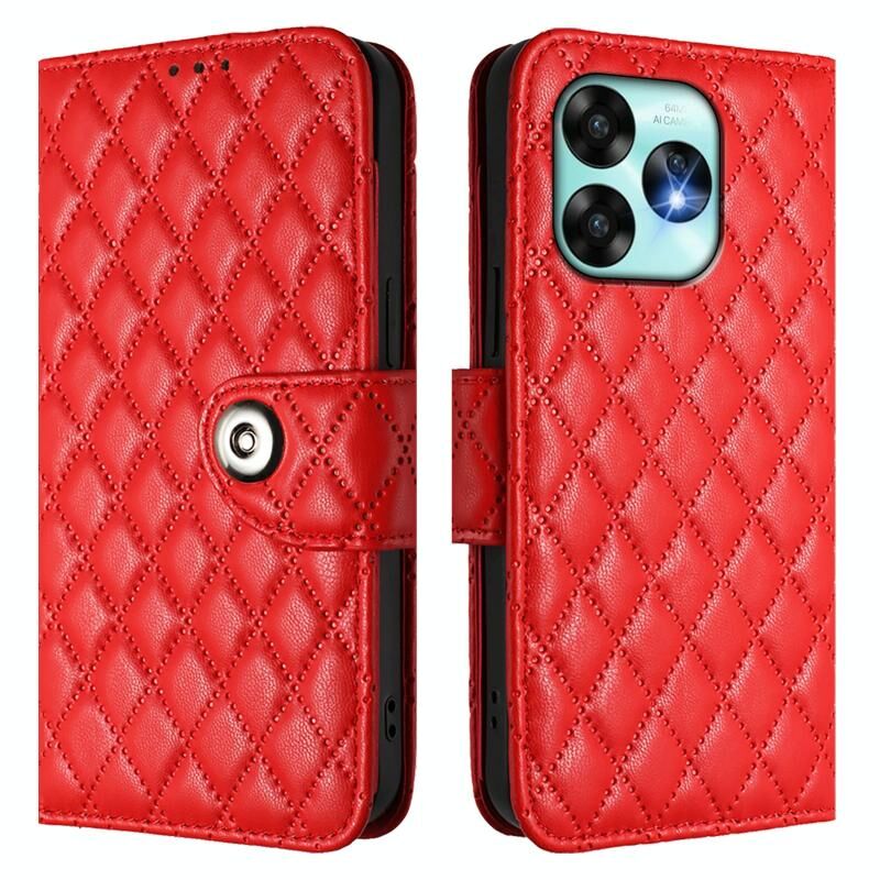 Για UMIDIGI A15 / A15C / A15T Rhombic Texture Flip δερμάτινη θήκη τηλεφώνου με κορδόνι (κόκκινο)