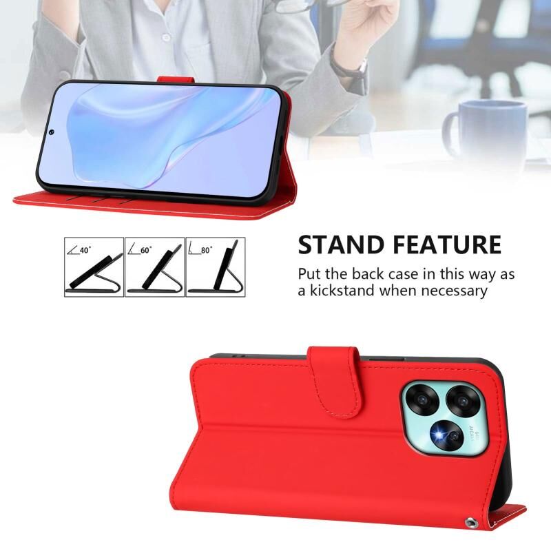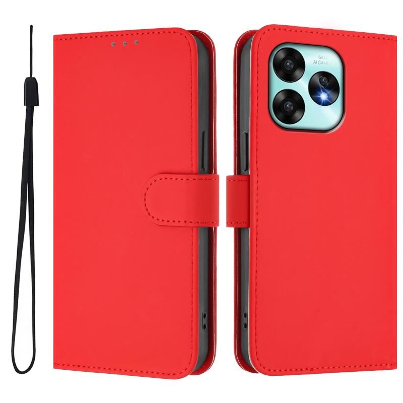 Για Umidigi A15 / A15C / A15T δέρμα αίσθηση στερεό χρώμα δερμάτινη θήκη τηλεφώνου με κορδόνι (κόκκινο)