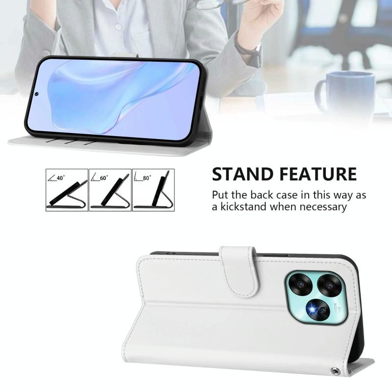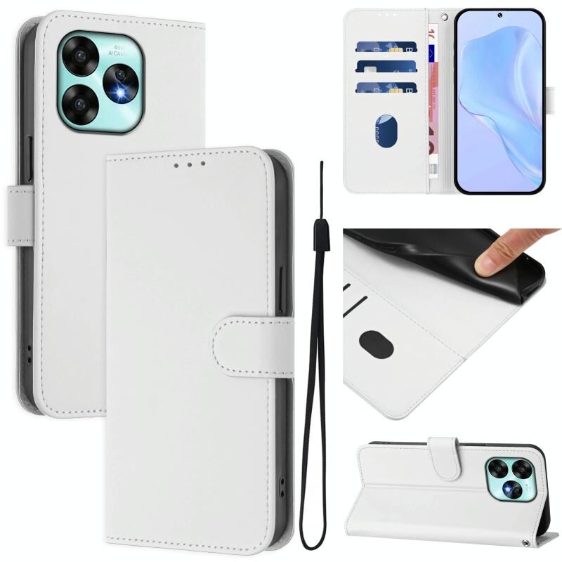 Για Umidigi A15 / A15C / A15T δέρμα αίσθηση στερεό χρώμα δερμάτινη θήκη τηλεφώνου με κορδόνι (λευκό)