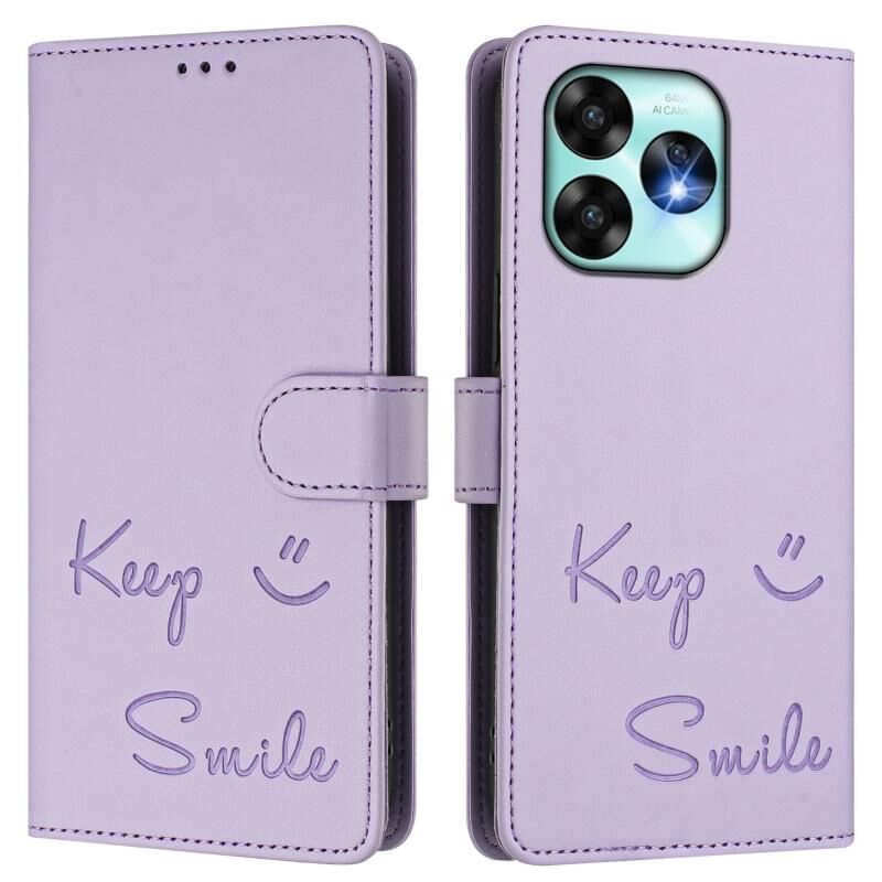 Για Umidigi A15 / A15C / A15T Χαμόγελο ανάγλυφο RFID δερμάτινη θήκη τηλεφώνου (Light Purple)