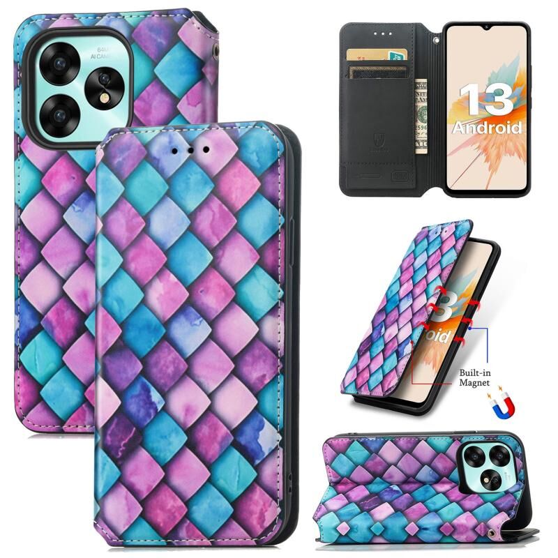 For UMIDIGI A15 CaseNeo Colorful Magnetic Leather Phone Case(Purple Scales)