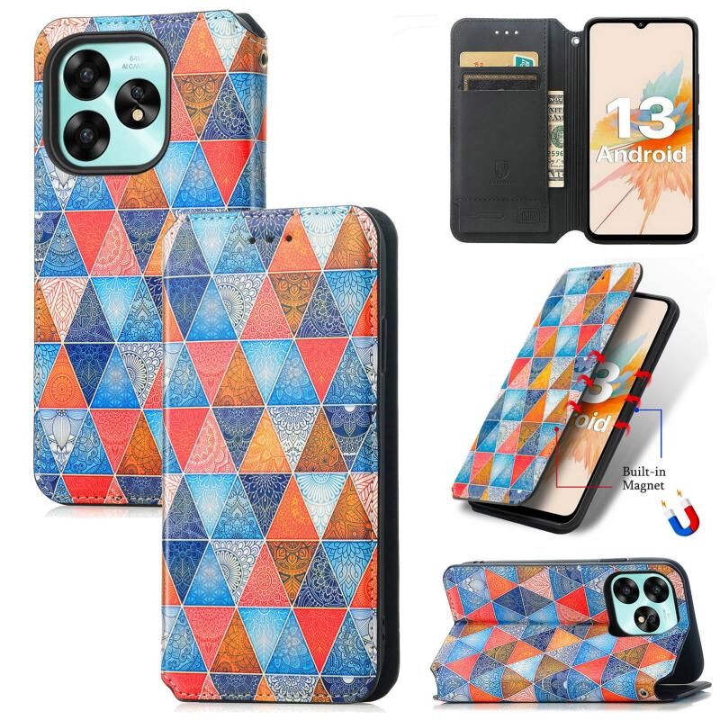For UMIDIGI A15 CaseNeo Colorful Magnetic Leather Phone Case(Rhombus Mandala)
