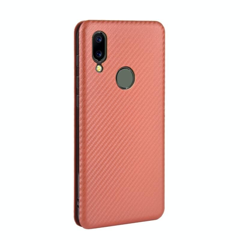 Για το UMIDIGI A3S Carbon Fiber Texture Horizontal Flip TPU + PC + PU Leather Case με υποδοχή κάρτας (καφέ)