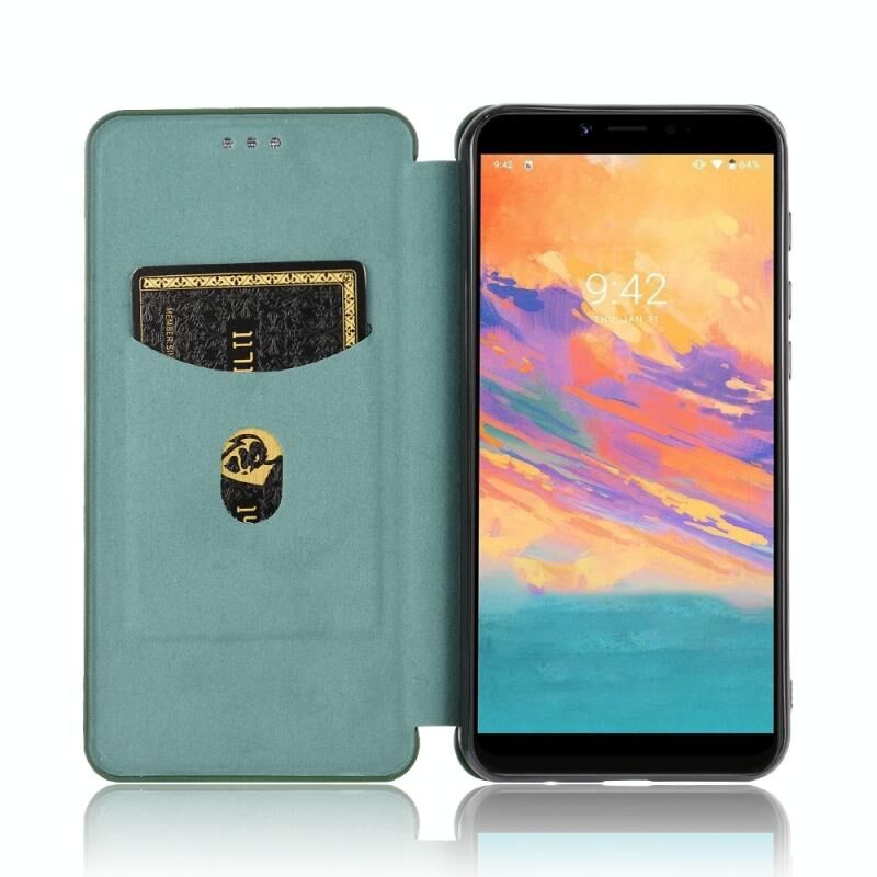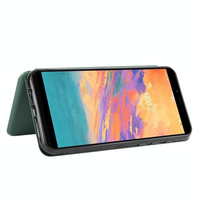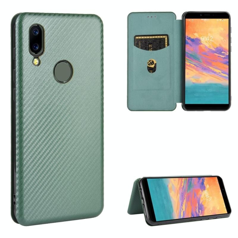 Για το UMIDIGI A3S Carbon Fiber Texture Horizontal Flip TPU + PC + PU Leather Case με υποδοχή κάρτας (πράσινο)
