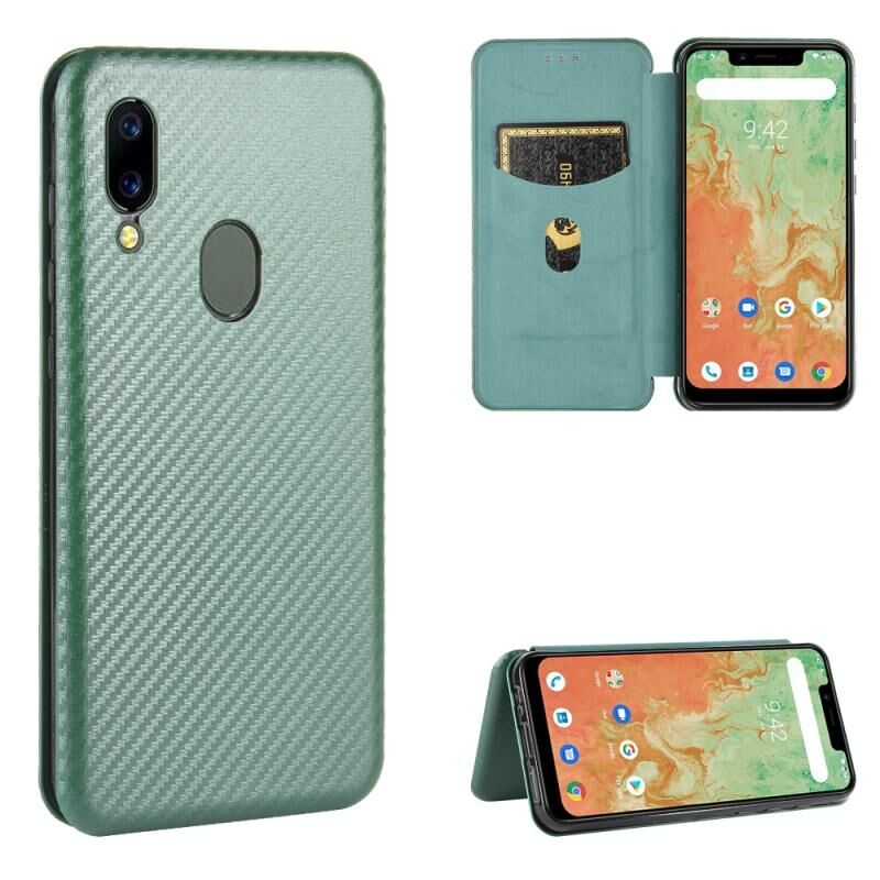 Για UMIDIGI A3X Carbon Fiber Texture Οριζόντια Flip TPU + PC + PU δέρμα υπόθεση με υποδοχή κάρτας (πράσινο)