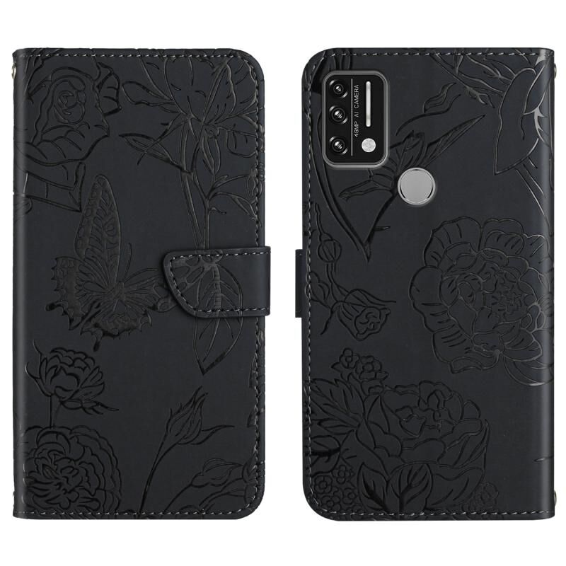 Θήκη τηλεφώνου από δέρμα με ανάγλυφο σχέδιο πεταλούδας και παιώνιας για Umidigi A7 Pro (Κόκκινο)