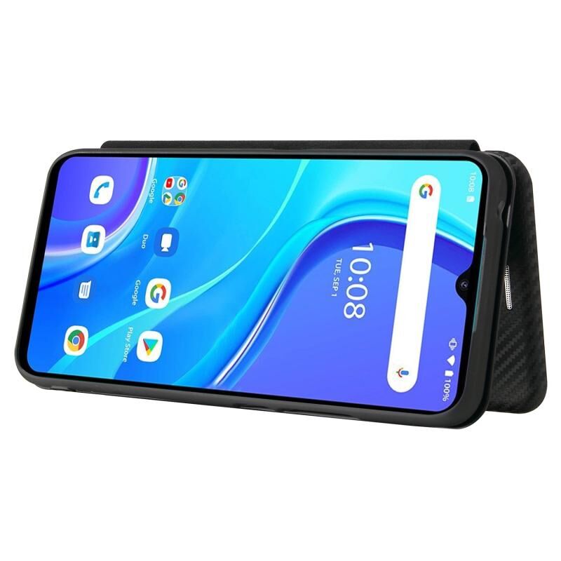 For UMIDIGI A7S Carbon Fiber Texture Horizontal Flip TPU + PC + PU Leather Case with Card Slot(Black)