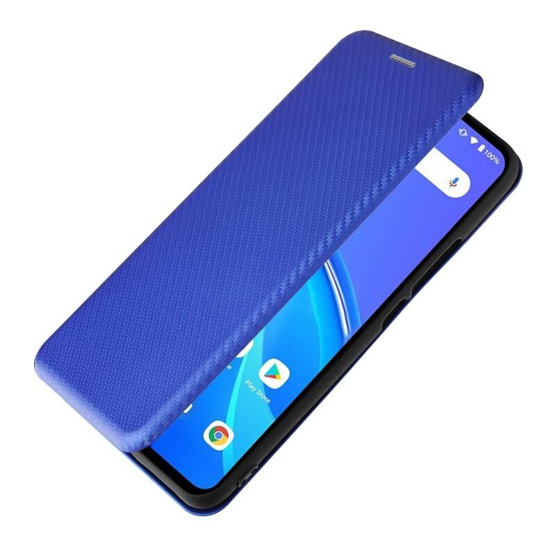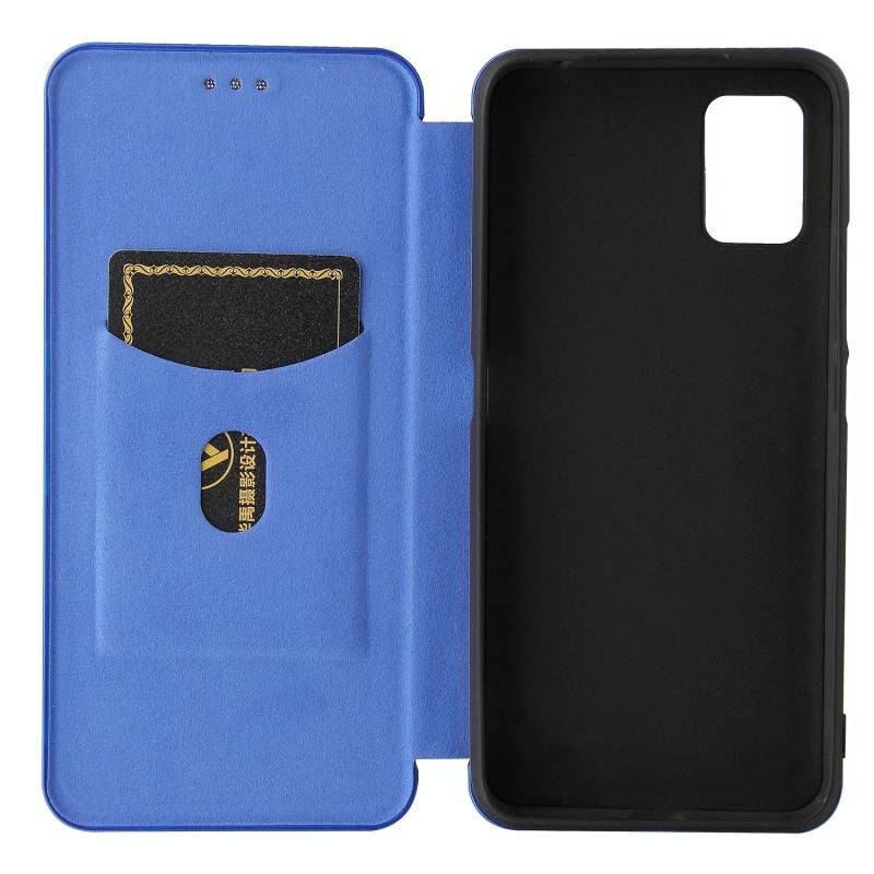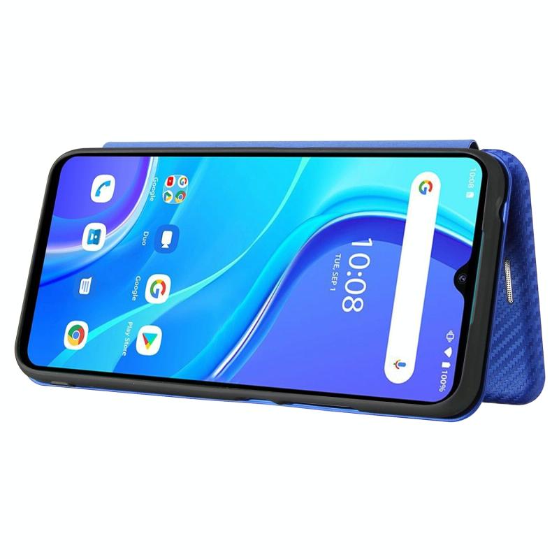 For UMIDIGI A7S Carbon Fiber Texture Horizontal Flip TPU + PC + PU Leather Case with Card Slot(Blue)