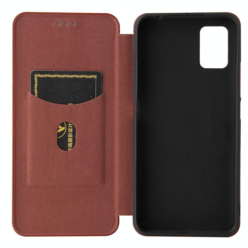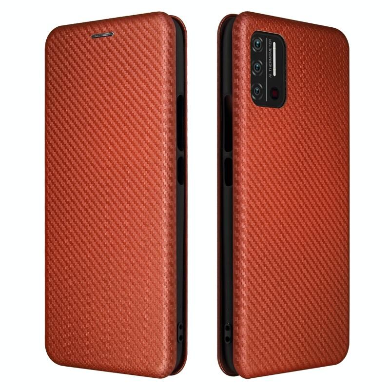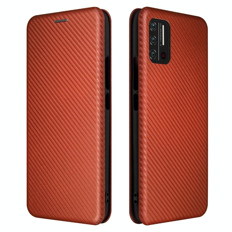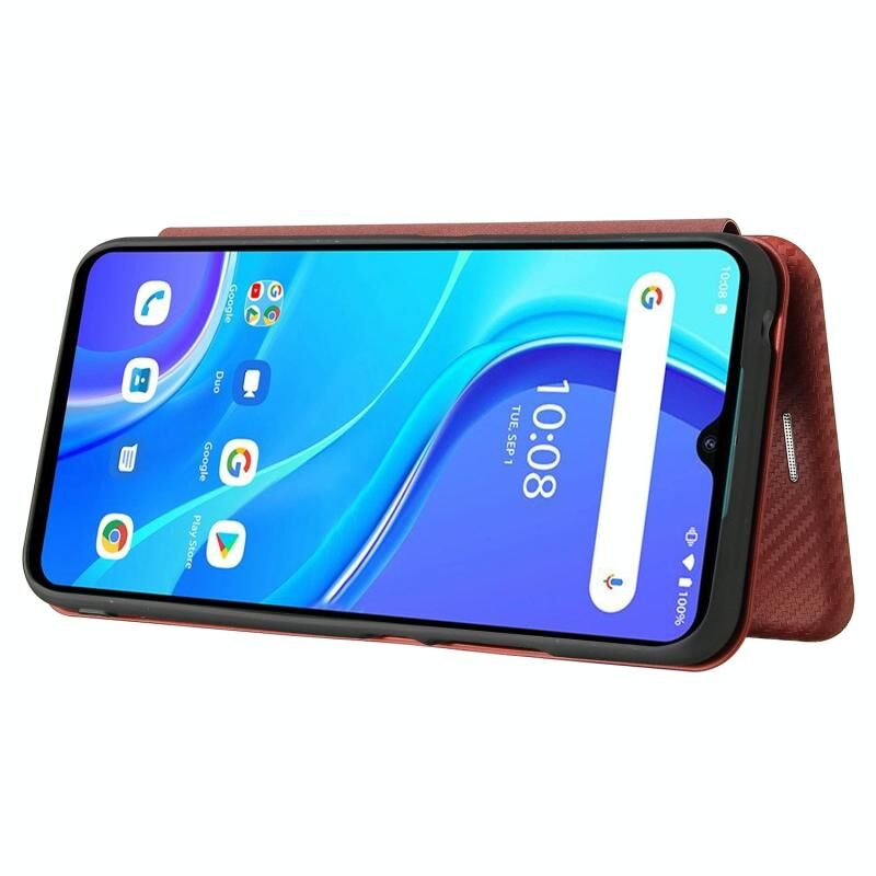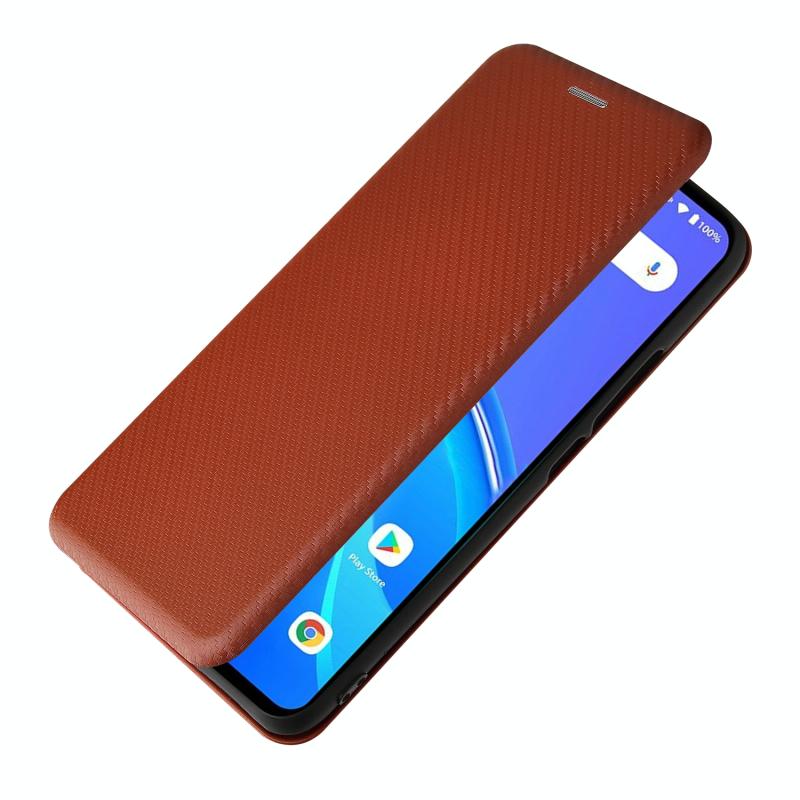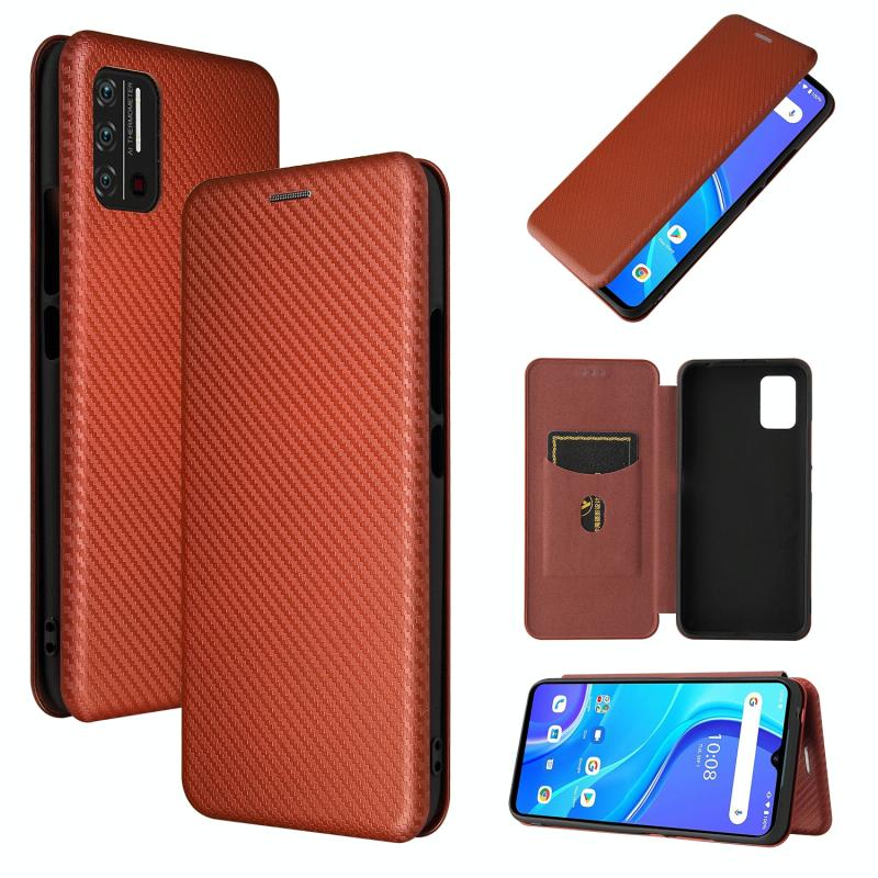 For UMIDIGI A7S Carbon Fiber Texture Horizontal Flip TPU + PC + PU Leather Case with Card Slot(Brown)