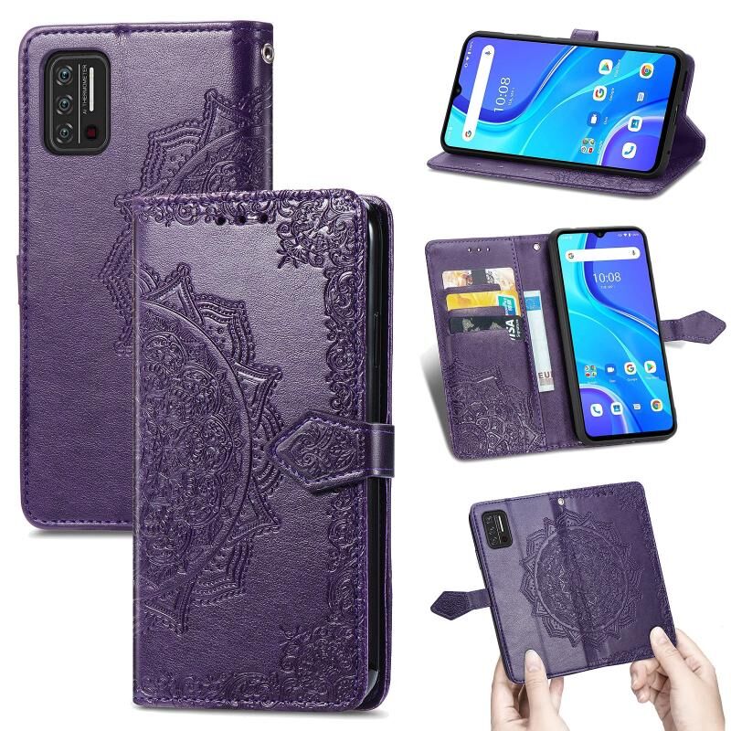 Για UMIDIGI A7S Mandala λουλούδι ανάγλυφο οριζόντια Flip δερμάτινη θήκη με κάτοχο & τρεις υποδοχές για κάρτες & πορτοφόλι & κορδόνι (μωβ)