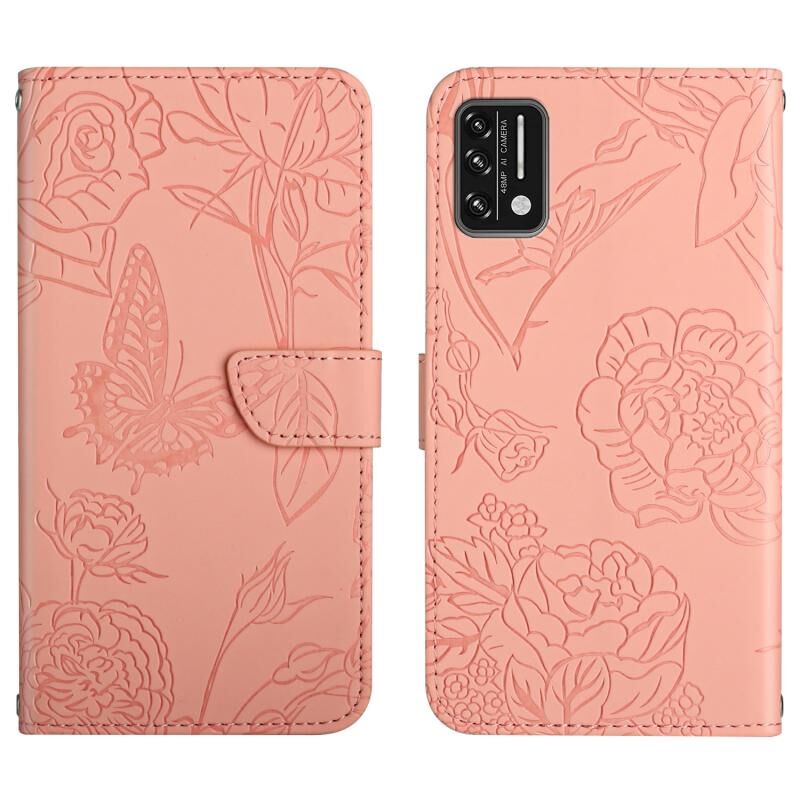 Θήκη τηλεφώνου από δέρμα με ανάγλυφο σχέδιο πεταλούδας και παιώνιας για Umidigi A7s (Κόκκινο)