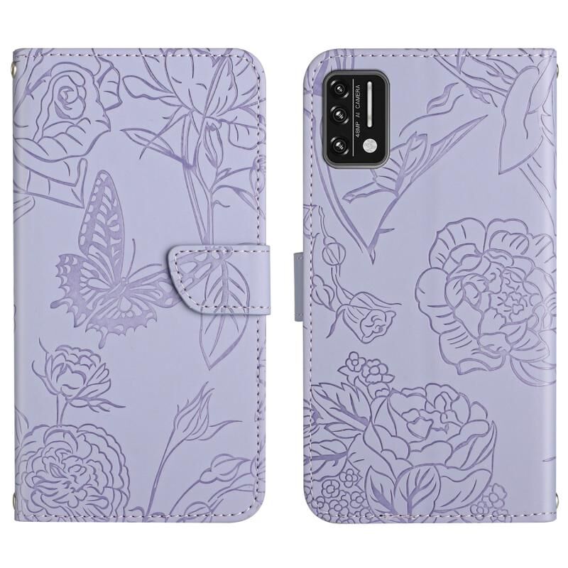 Θήκη τηλεφώνου από δέρμα με ανάγλυφο σχέδιο πεταλούδας και παιώνιας για Umidigi A7s (Κόκκινο)