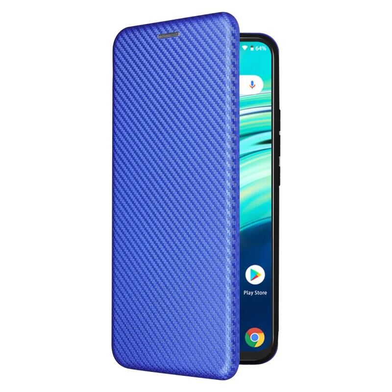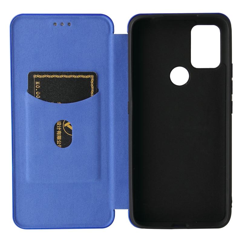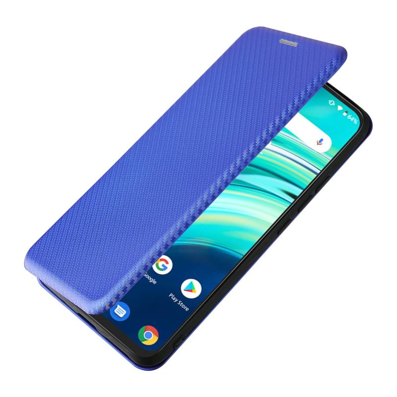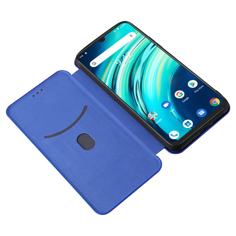 For UMIDIGI A9 Carbon Fiber Texture Horizontal Flip TPU + PC + PU Leather Case with Card Slot(Blue)