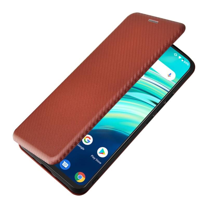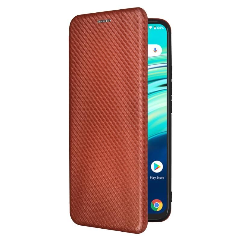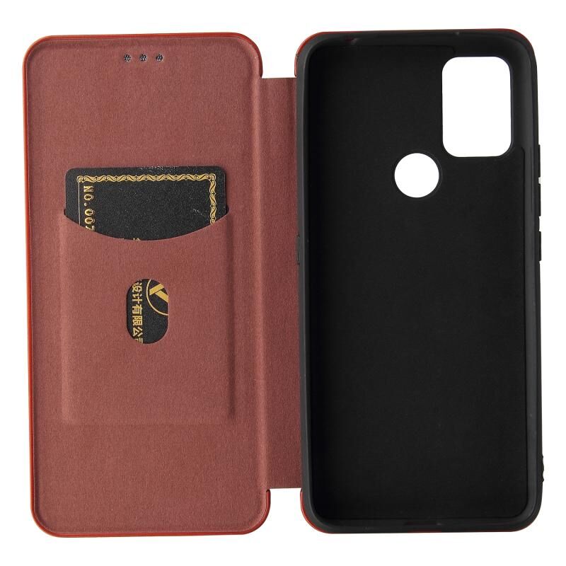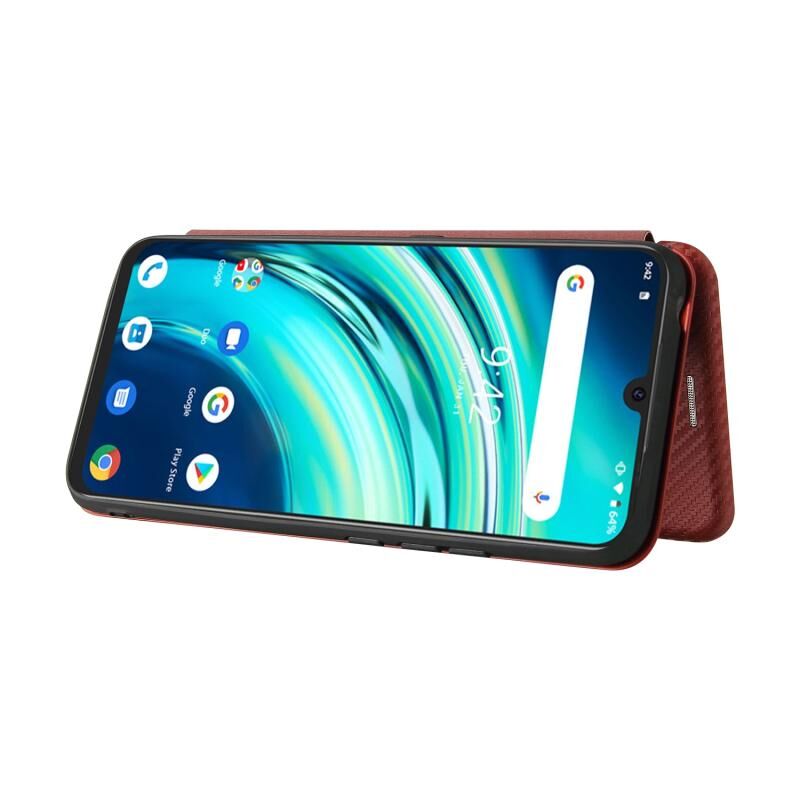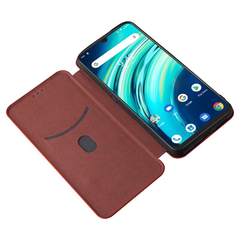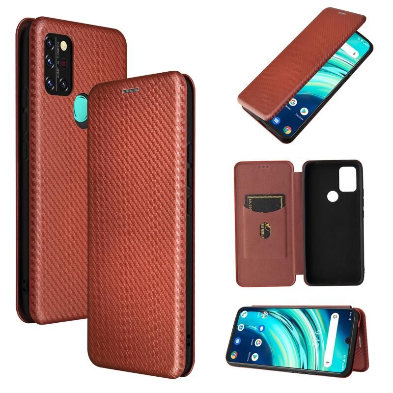 Για UMIDIGI A9 Carbon Fiber υφή οριζόντια Flip TPU + PC + PU δέρμα υπόθεση με υποδοχή κάρτας (καφέ)