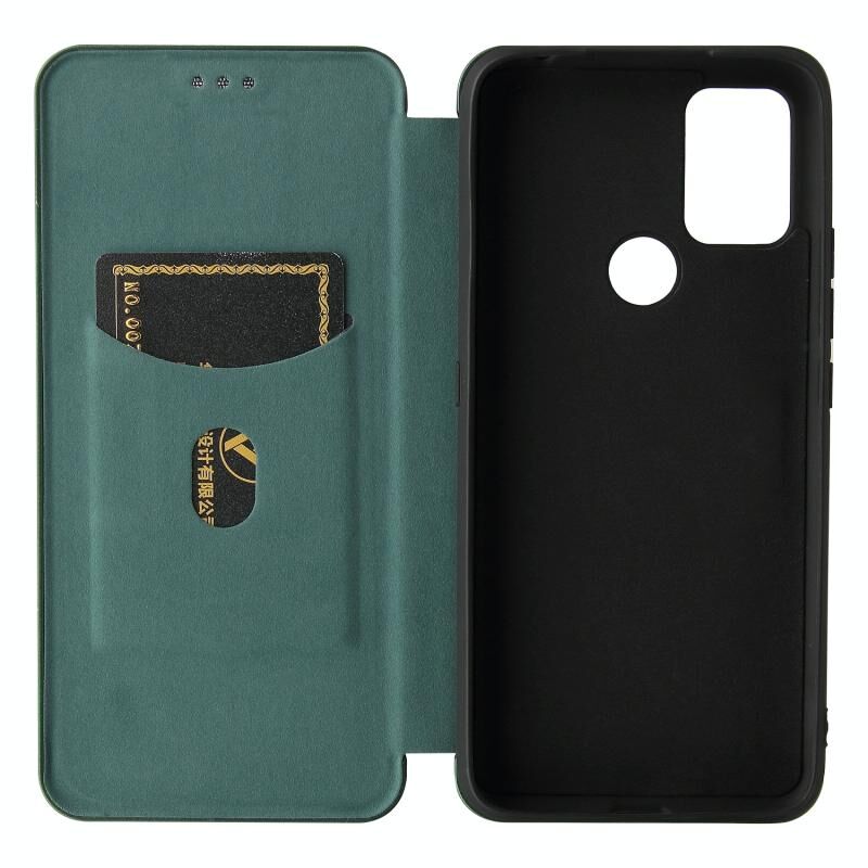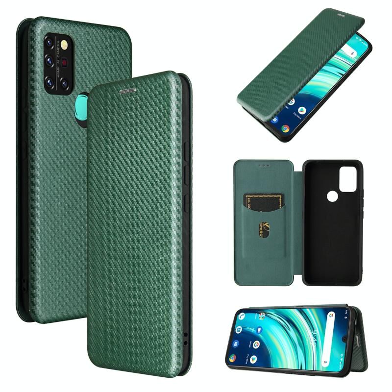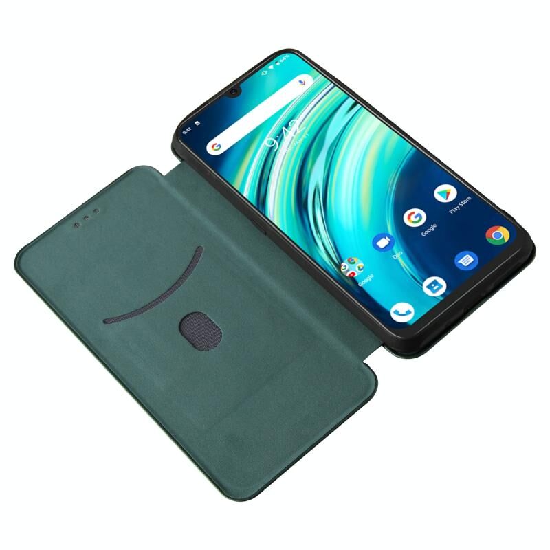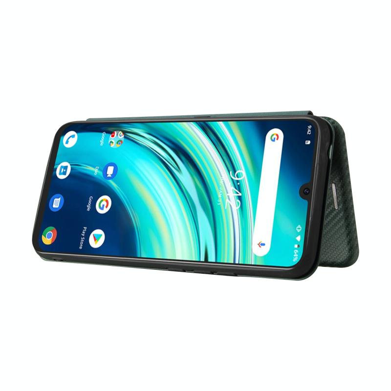 For UMIDIGI A9 Carbon Fiber Texture Horizontal Flip TPU + PC + PU Leather Case with Card Slot(Green)