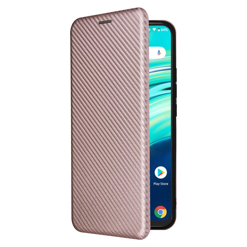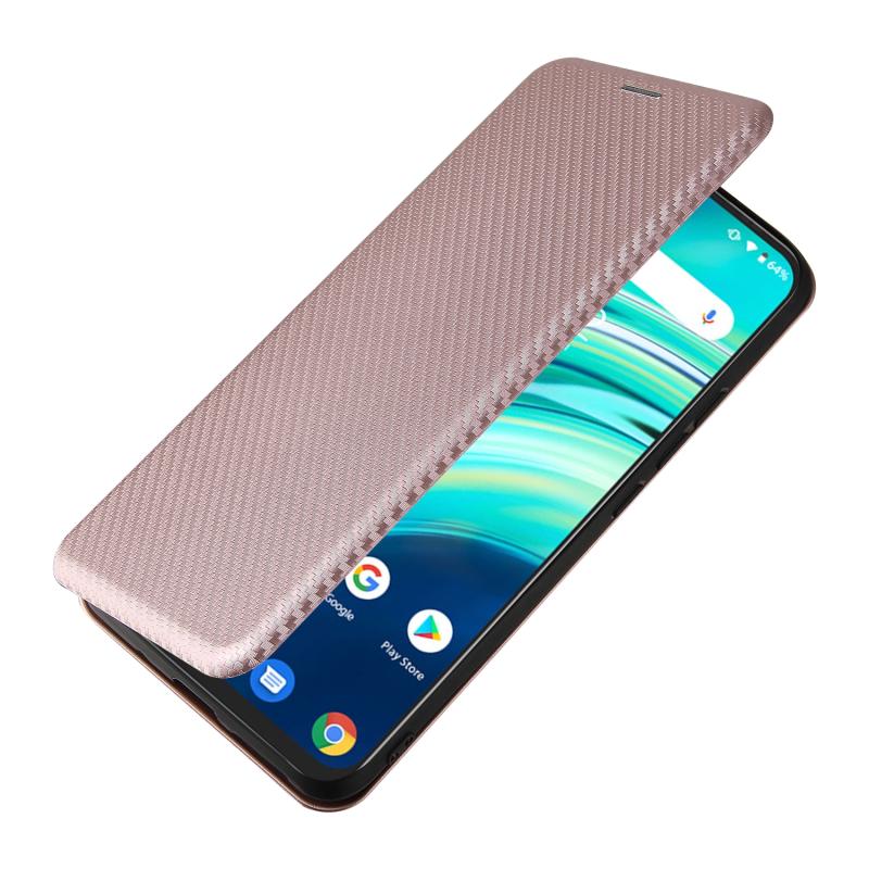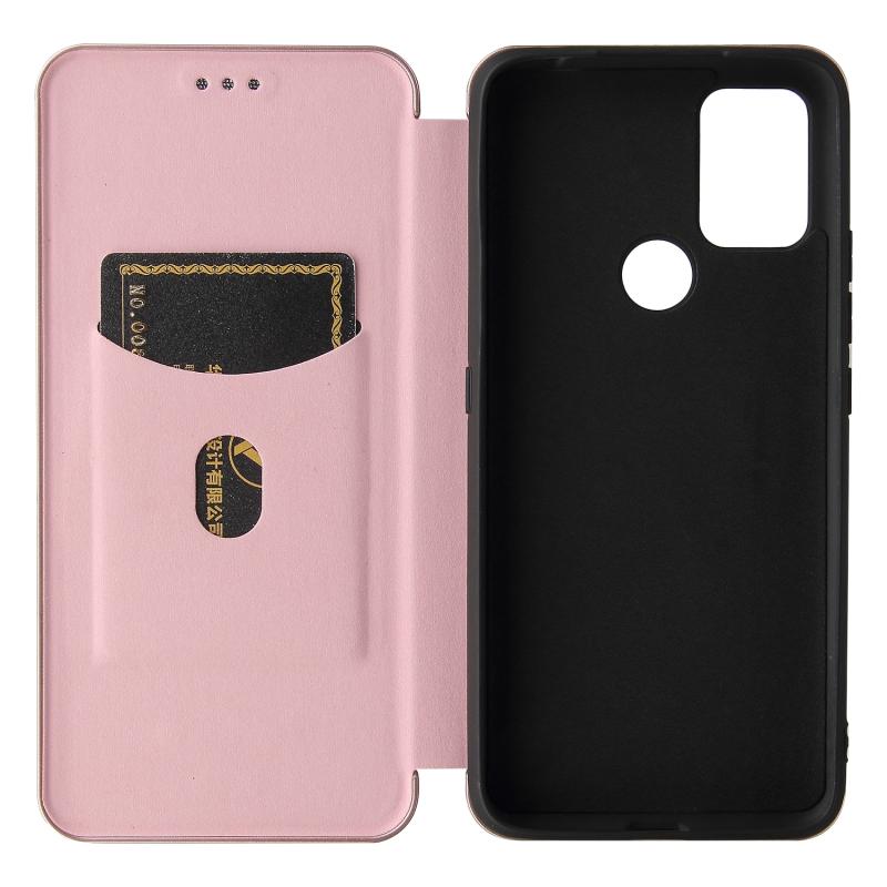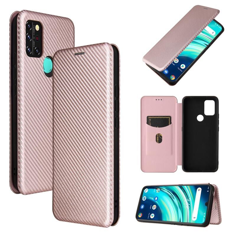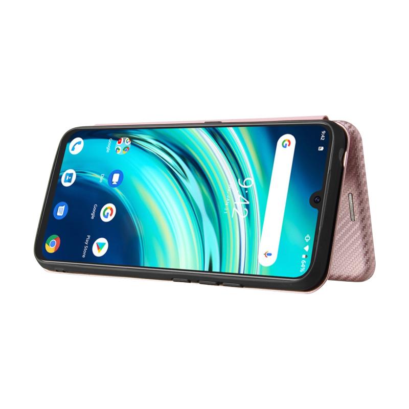For UMIDIGI A9 Carbon Fiber Texture Horizontal Flip TPU + PC + PU Leather Case with Card Slot(Pink)