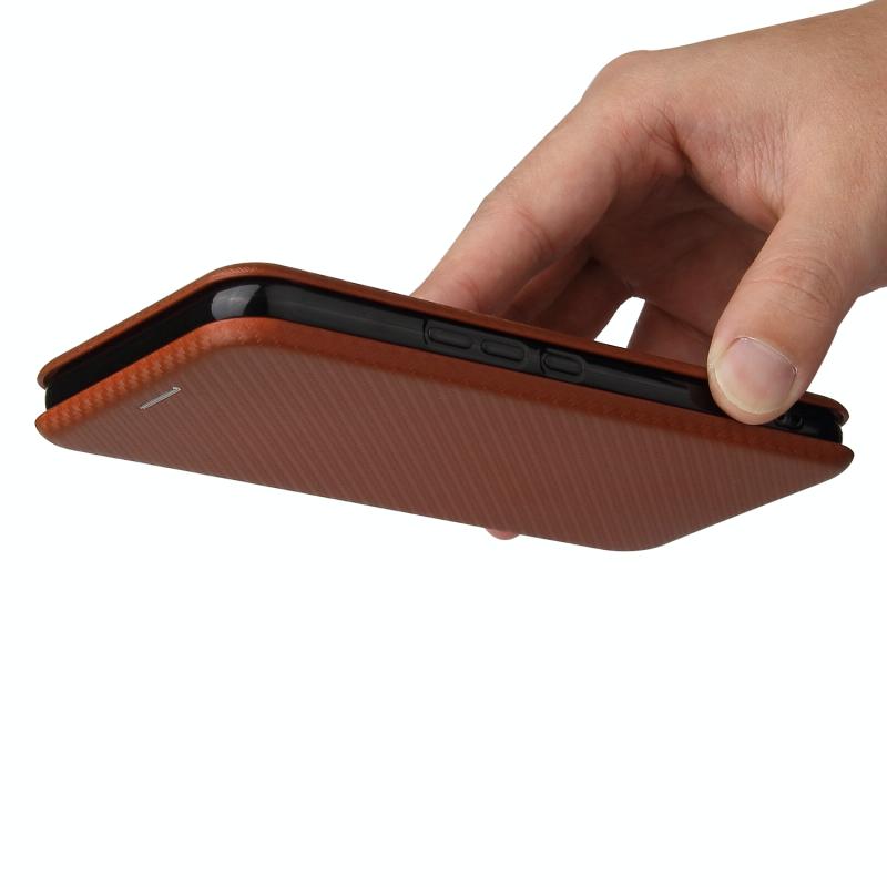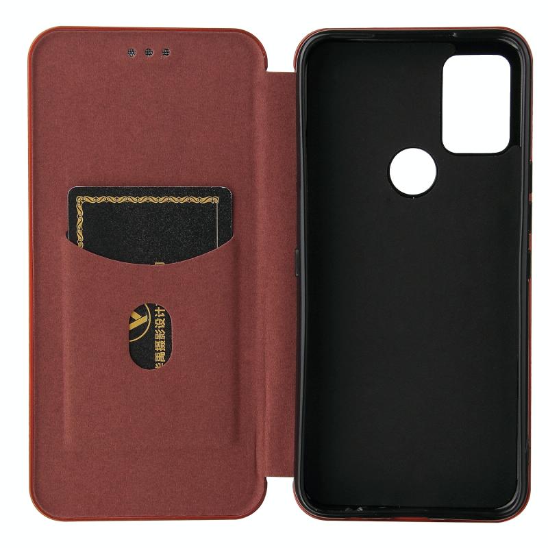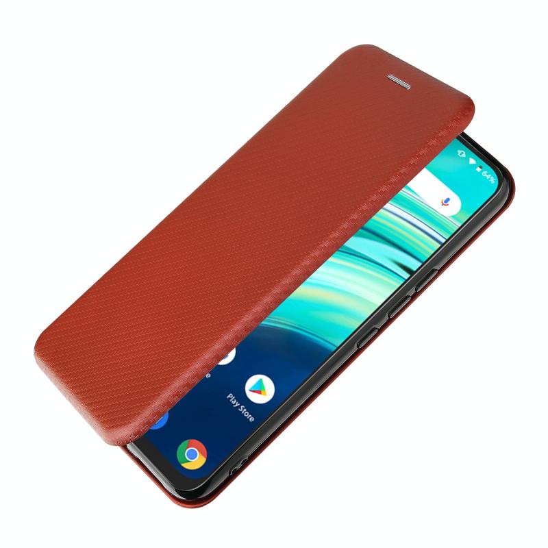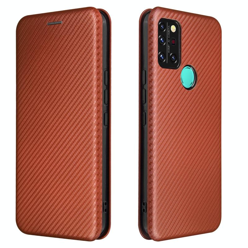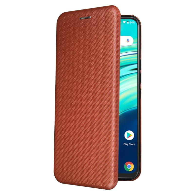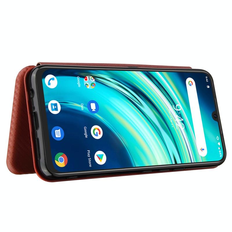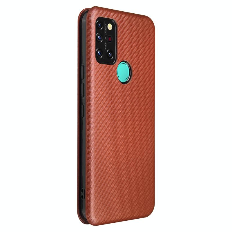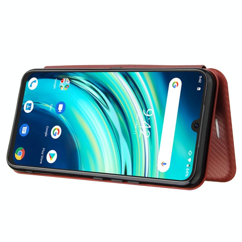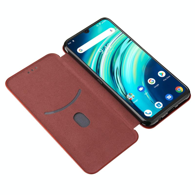 For UMIDIGI A9 Pro Carbon Fiber Texture Horizontal Flip TPU + PC + PU Leather Case with Card Slot(Brown)
