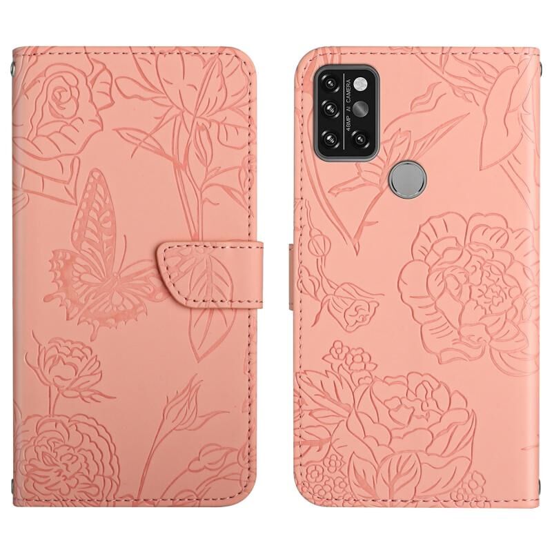 Θήκη τηλεφώνου από δέρμα με ανάγλυφο σχέδιο πεταλούδας και παιώνιας για Umidigi A9 Pro (Κόκκινο)