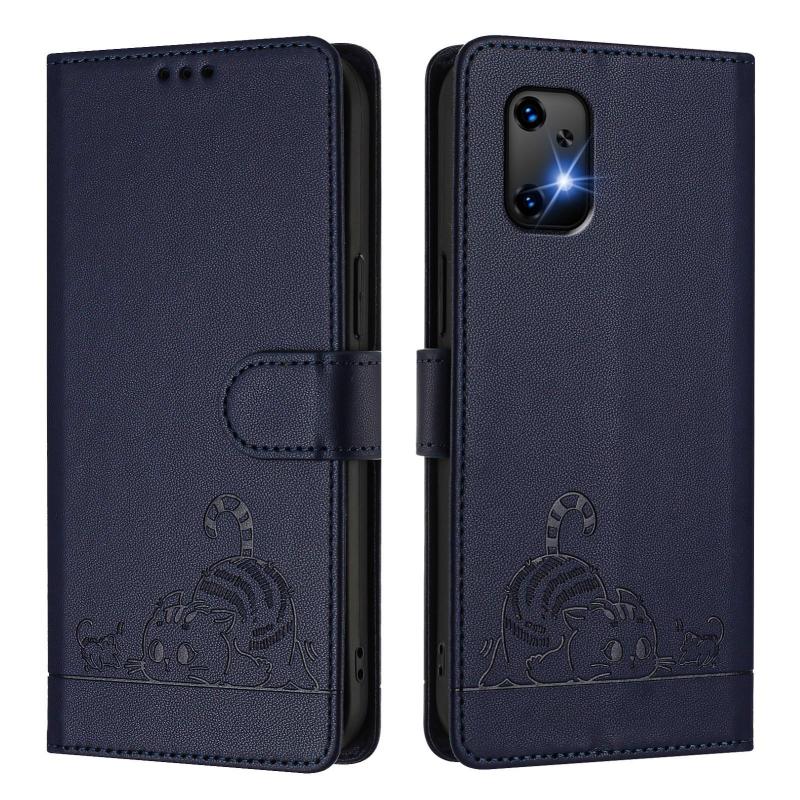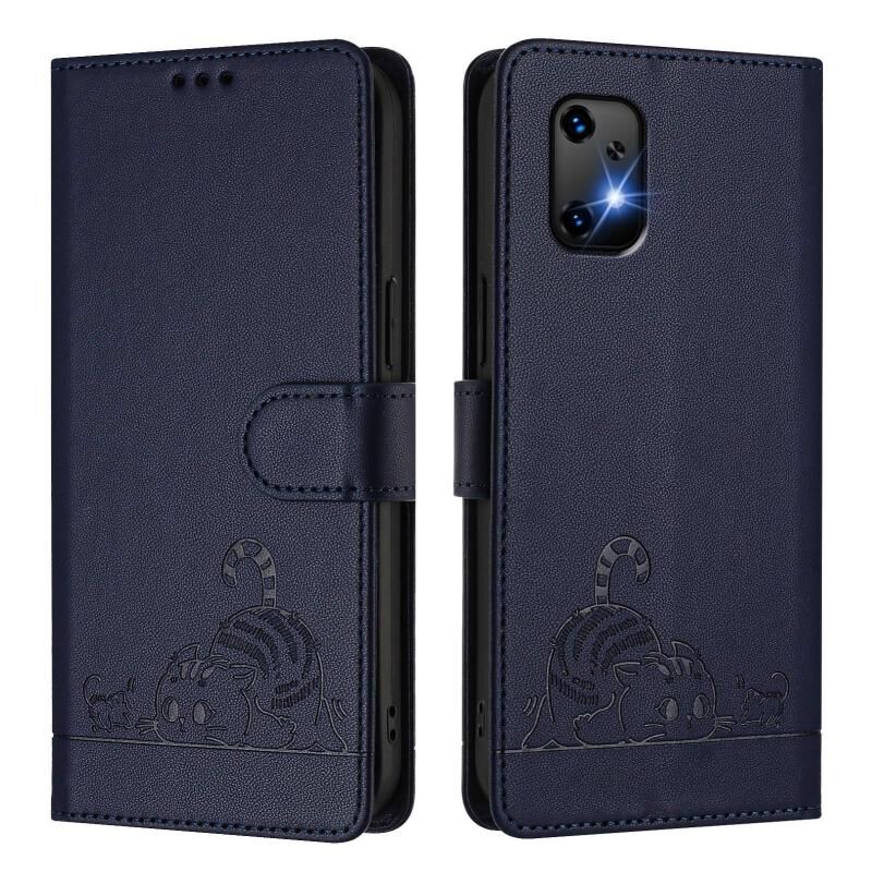 Θήκη τηλεφώνου UMIDIGI Bison X20 με ανάγλυφο σχέδιο γάτας και ποντικού, από δέρμα με τεχνολογία RFID και λουρί (Μέντας Πράσινο)