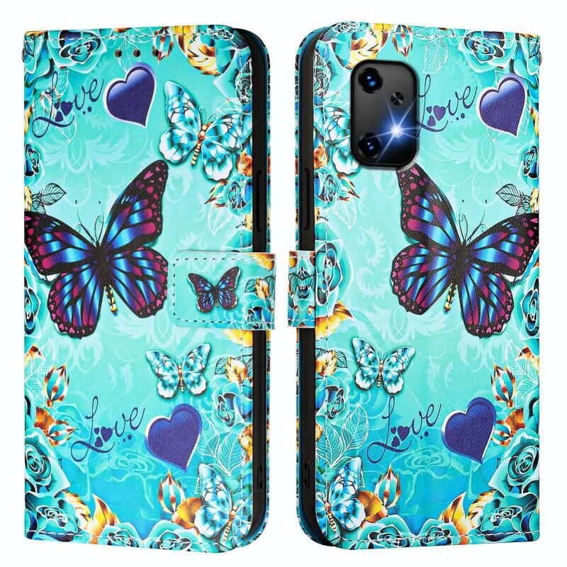 Θήκη τηλεφώνου Umidigi Bison X20 από δέρμα με απλή ύφανση και πολύχρωμο σχέδιο (Αγάπη Πεταλούδα)