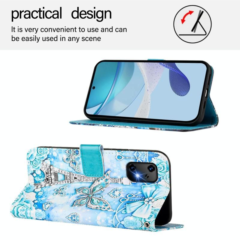 Θήκη τηλεφώνου Umidigi Bison X20 από δέρμα με απλή ύφανση και πολύχρωμο σχέδιο (Πύργος Πεταλούδας)