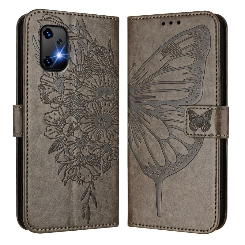Για UMIDIGI Bison X20 ανάγλυφη πεταλούδα δερμάτινη θήκη τηλεφώνου (γκρι)