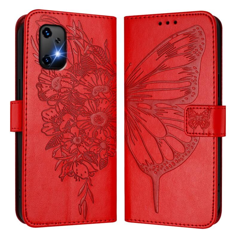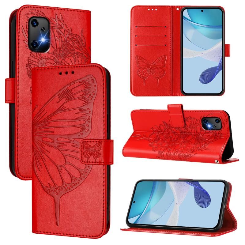 Για UMIDIGI Bison X20 ανάγλυφη πεταλούδα δερμάτινη θήκη τηλεφώνου (κόκκινο)