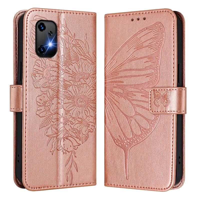 Για UMIDIGI Bison X20 ανάγλυφη πεταλούδα δερμάτινη θήκη τηλεφώνου (Rose Gold)