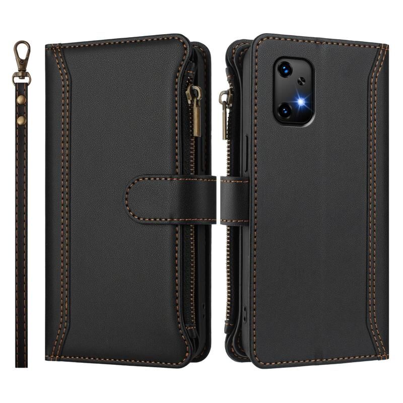 For Umidigi Bison X20 Magnetic Closure 9 Card Slots Zipper Leather Case with Hand Strap(Black)