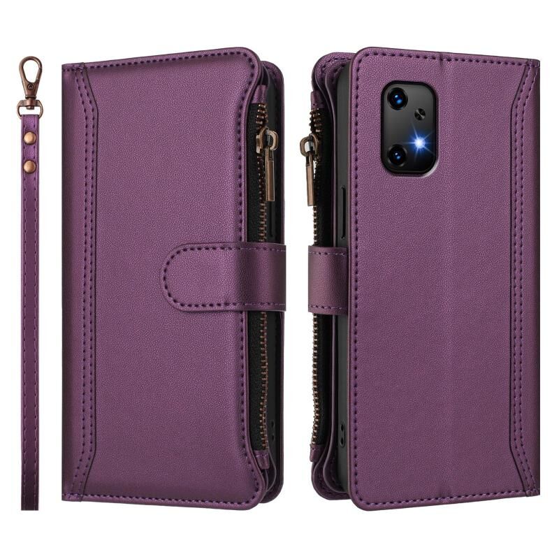 For Umidigi Bison X20 Magnetic Closure 9 Card Slots Zipper Leather Case with Hand Strap(Purple)